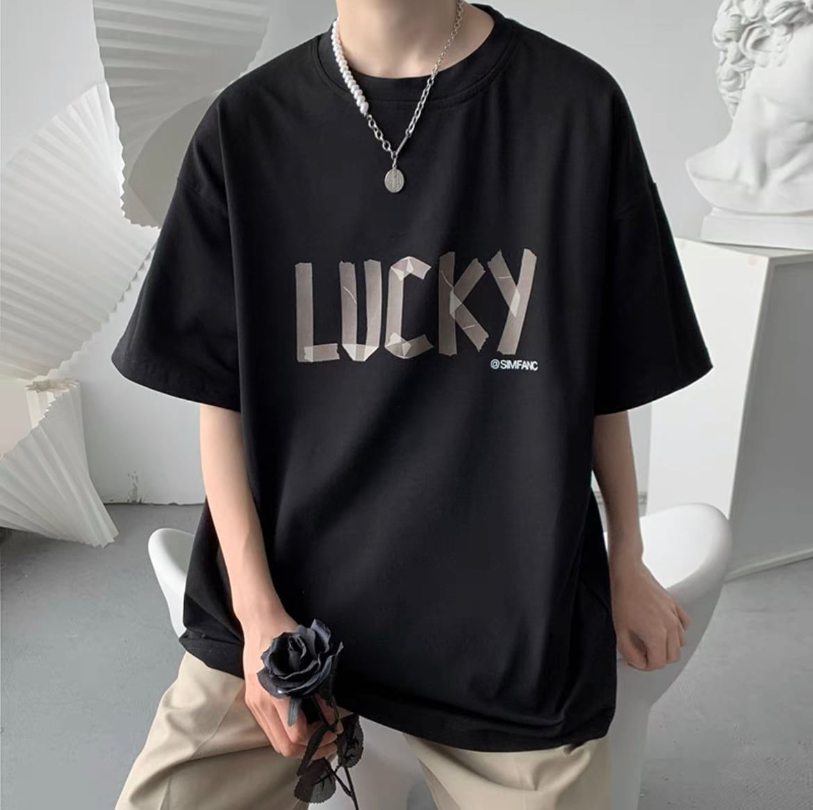 tape message print Tシャツ 4色