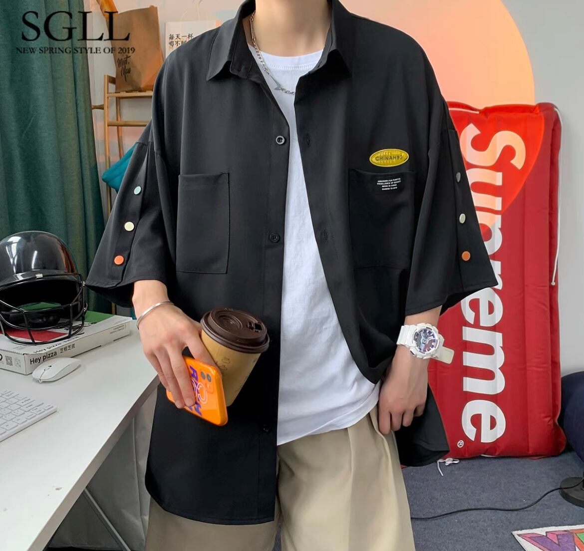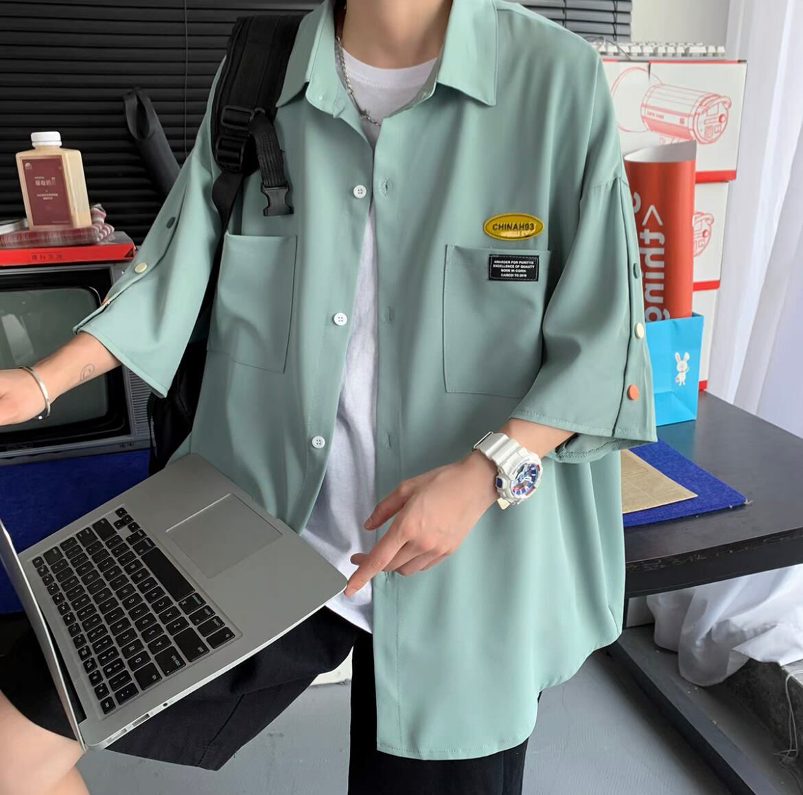 side color button shirt 3色